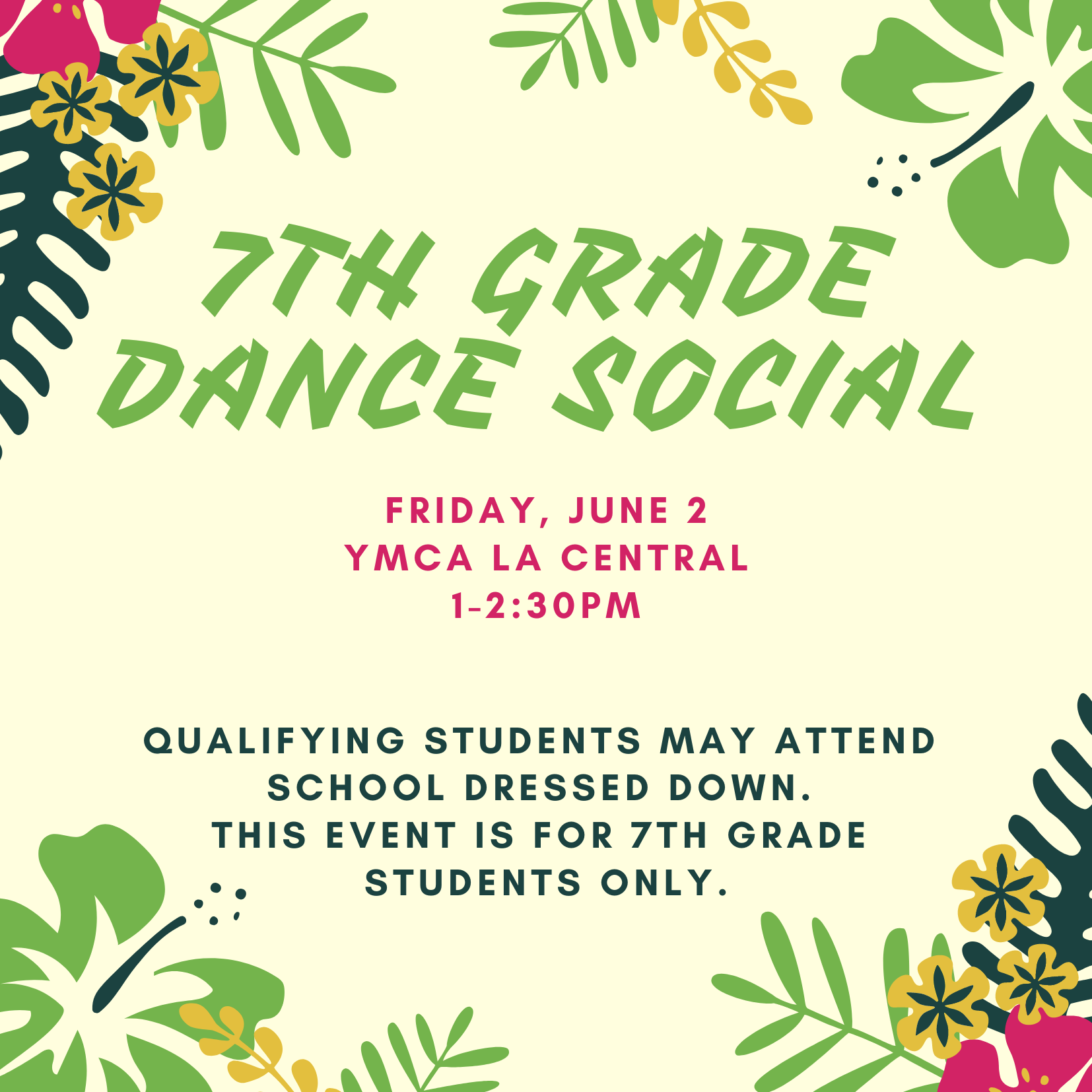 ¡El código de vestimenta es casual! Los estudiantes deben estar cómodos y listos para disfrutar de un agradable momento social entre amigos.